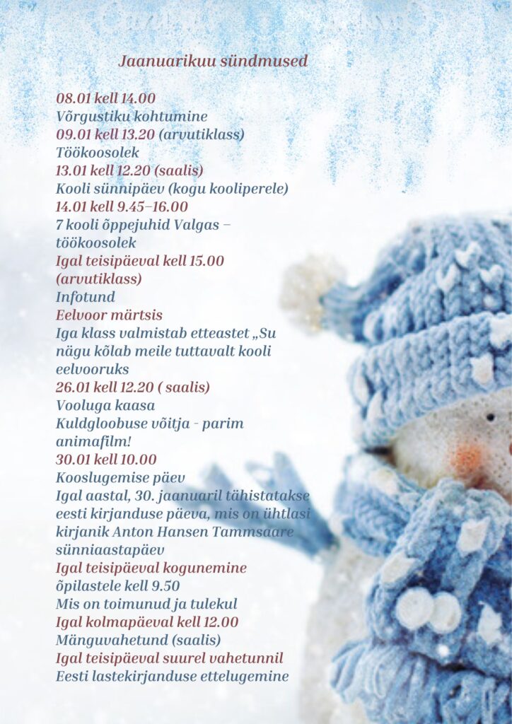 Jõulukuul täitus meie koolimaja rõõmu, ootusärevuse ja mõnusa pühademeeleoluga. Õpilased ja õpetajad võtsid koos aega, et nautida mitmekesiseid ja südamlikke jõulutegevusi. Vaadati ühiselt jõulufilmi ning lauldi saalis rõõmsalt jõulukaraoket, mis tõi paljudele naeratuse näole.